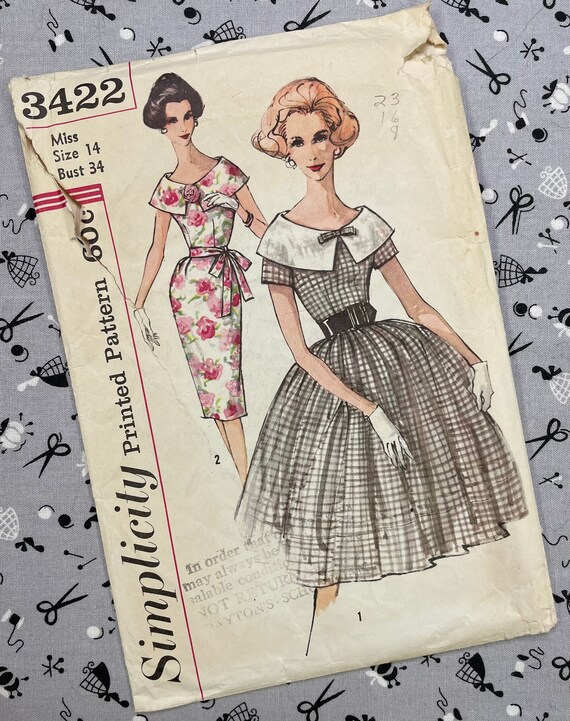 Simplicity 3422 Vintage Sewing Pattern Dress Size 14 Bust Etsy